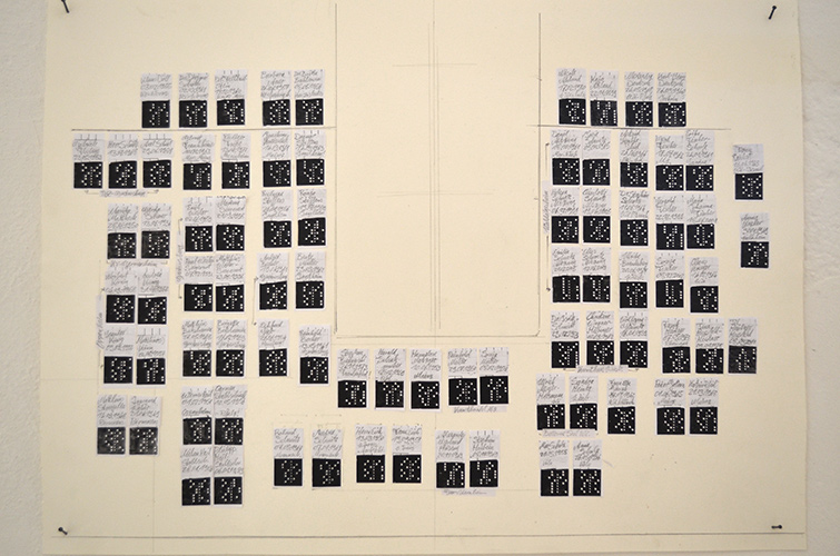 Hängeplan der codierten Geburtsdaten mit Namen und Daten in Klarschrift